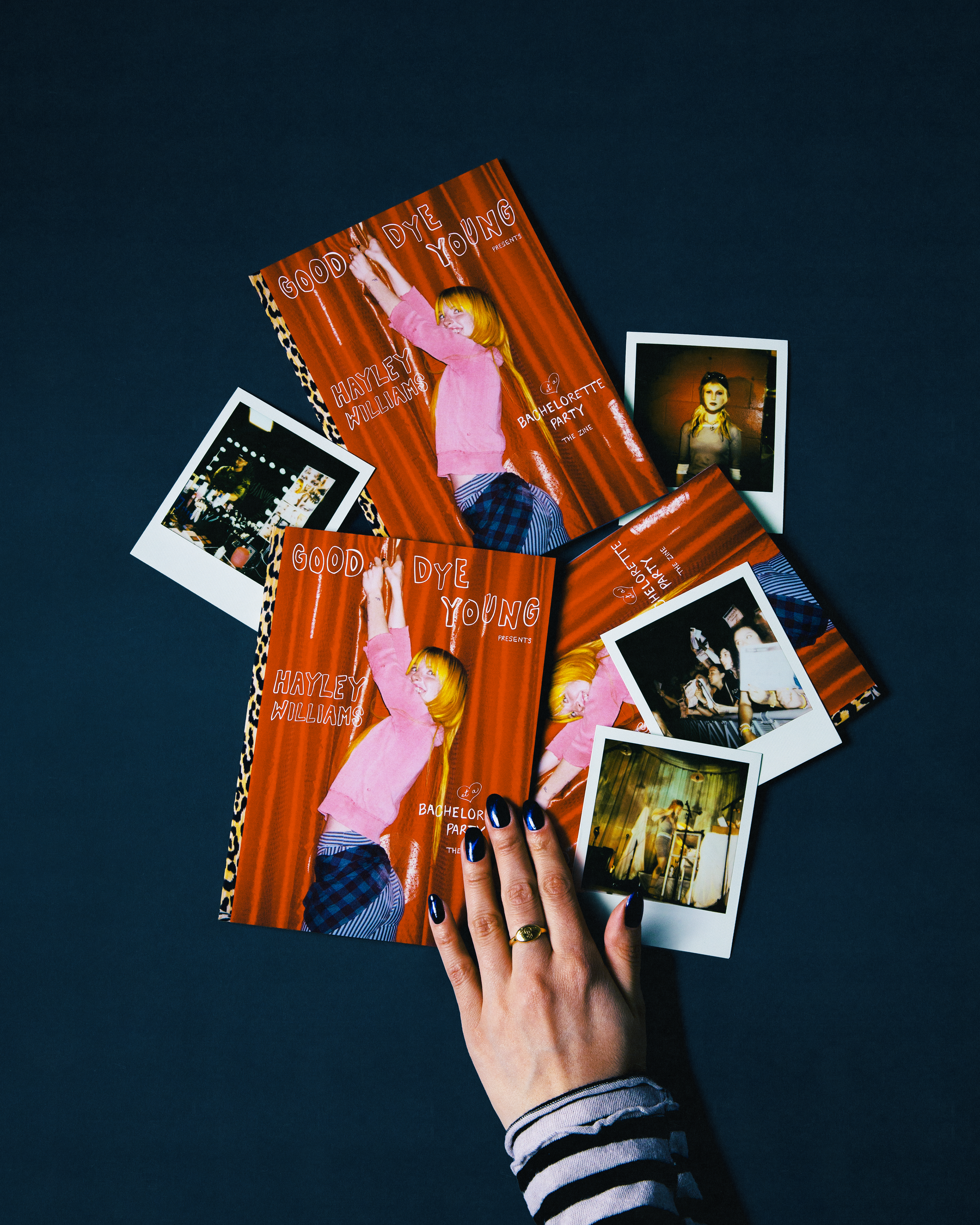The Good Dye Young Presents: Hayley Williams at a Bachelorette Party: the Zine, and the Hand Drawn Tour Tee are being sold on Hayley Williams' nationwide tour, and online at GoodDyeYoung.com and HayleyWilliams.net.